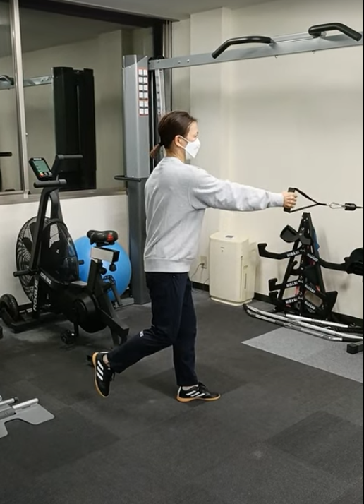 これはシングルレッグ・ケーブルローという種目です。