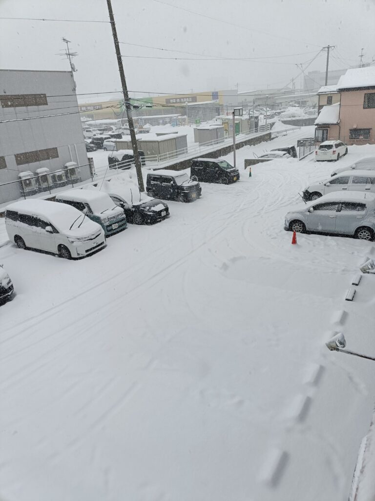 ただいまヨンデーの駐車場は、スケートリンクのようにツルツルに凍った舗装上を雪が覆っており、非常に転倒しやすい状況です。
